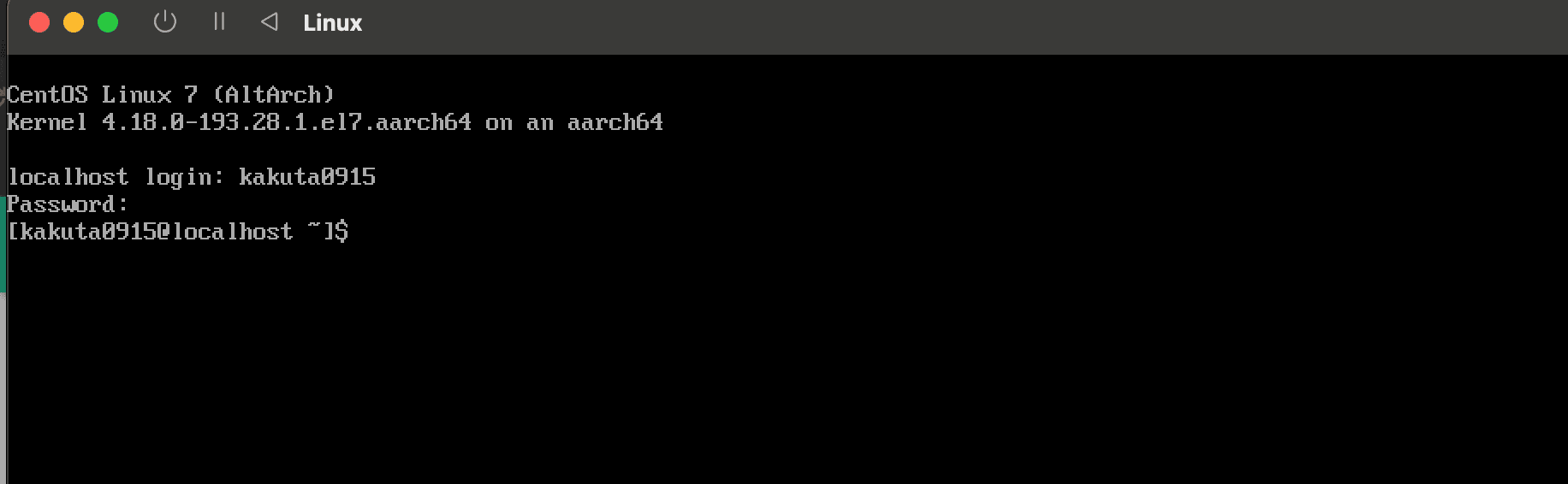 - 再度VMを起動すると、先ほど作成したアカウントでログインできる