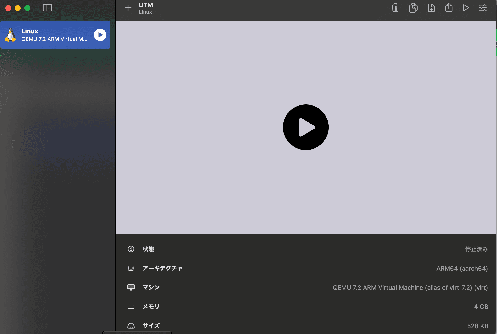 - 設定が完了するとこのような画面が表示されるので、再生ボタン「▶」を押す