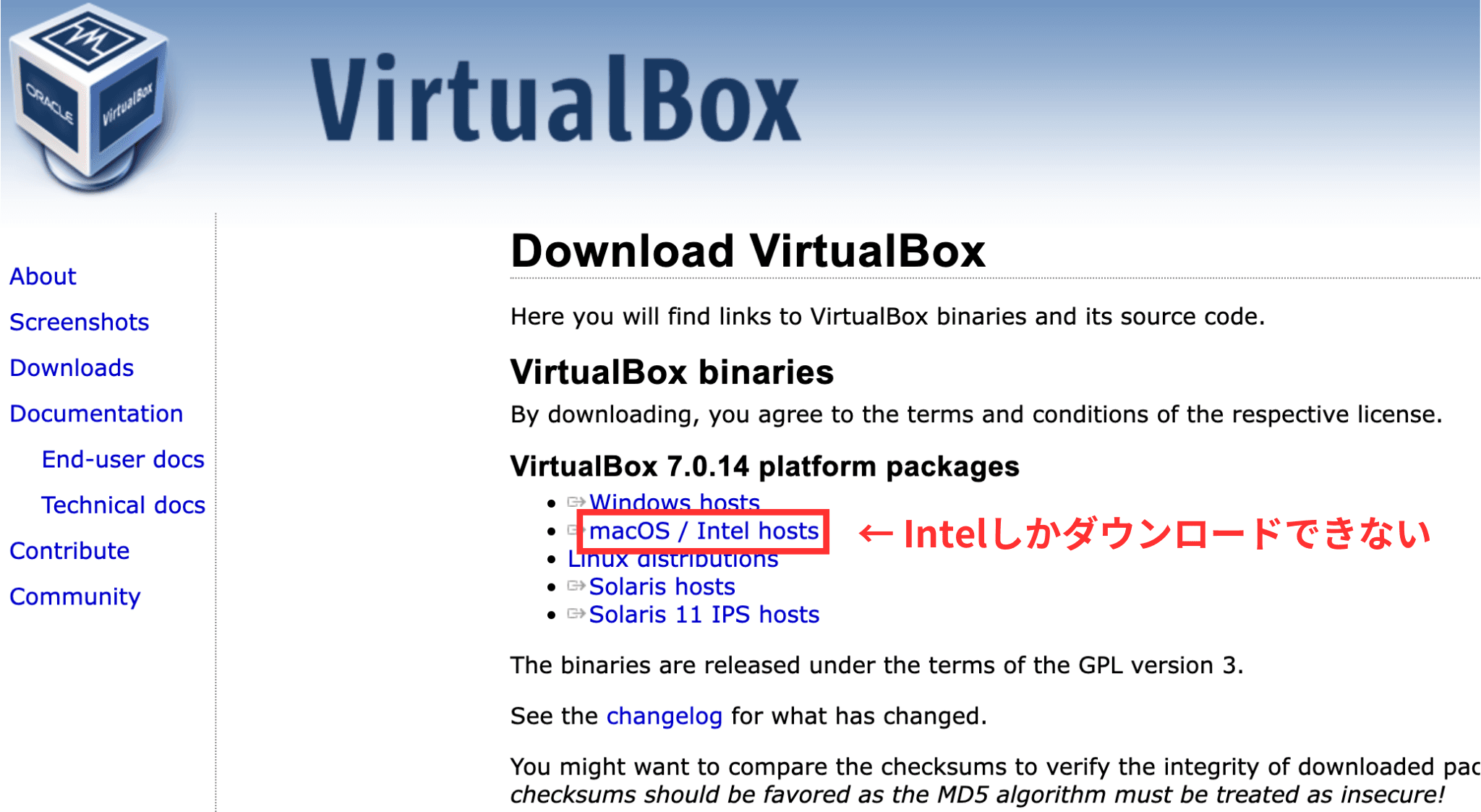 M1 MacはARMベースのプロセッサを使用しており、Intel x86_64アーキテクチャ向けにビルドされた仮想マシンソフトウェアやゲストオペレーティングシステムが直接実行されない可能性があります。従って、Intel向けのVirtualBoxをそのまま使用することは出来ません。